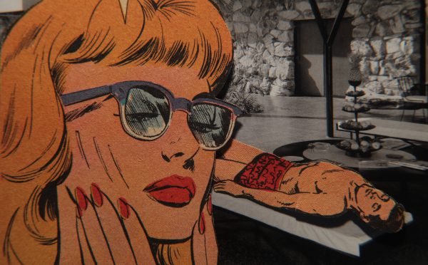 “Organized in 12 discrete chapters, SIXTY SIX is a milestone achievement, the culmination of Klahr’s decades-long work in collage filmmaking. With its complex superimpositions of imagery and music, and its range of tones and textures at once alluringly erotic and forebodingly sinister, the film is a hypnotic dream of 1960 and 1970s Pop. Elliptical tales of sunshine noir and classic Greek mythology are inhabited by comic book super heroes and characters from Portuguese foto romans who wander through midcentury modernist Los Angeles architectural photographs and landscapes from period magazines. SIXTY SIX is the latest, and perhaps most magisterial, entry in Klahr’s open-ended digital series Prolix Satori, in which the artist mines his vast 30-year archive of collage materials. As the historian Tom Gunning observes, ‘Klahr’s films generate a blend of melancholy and desire from this interplay of grasping and losing, remembering and forgetting.’” – MoMA